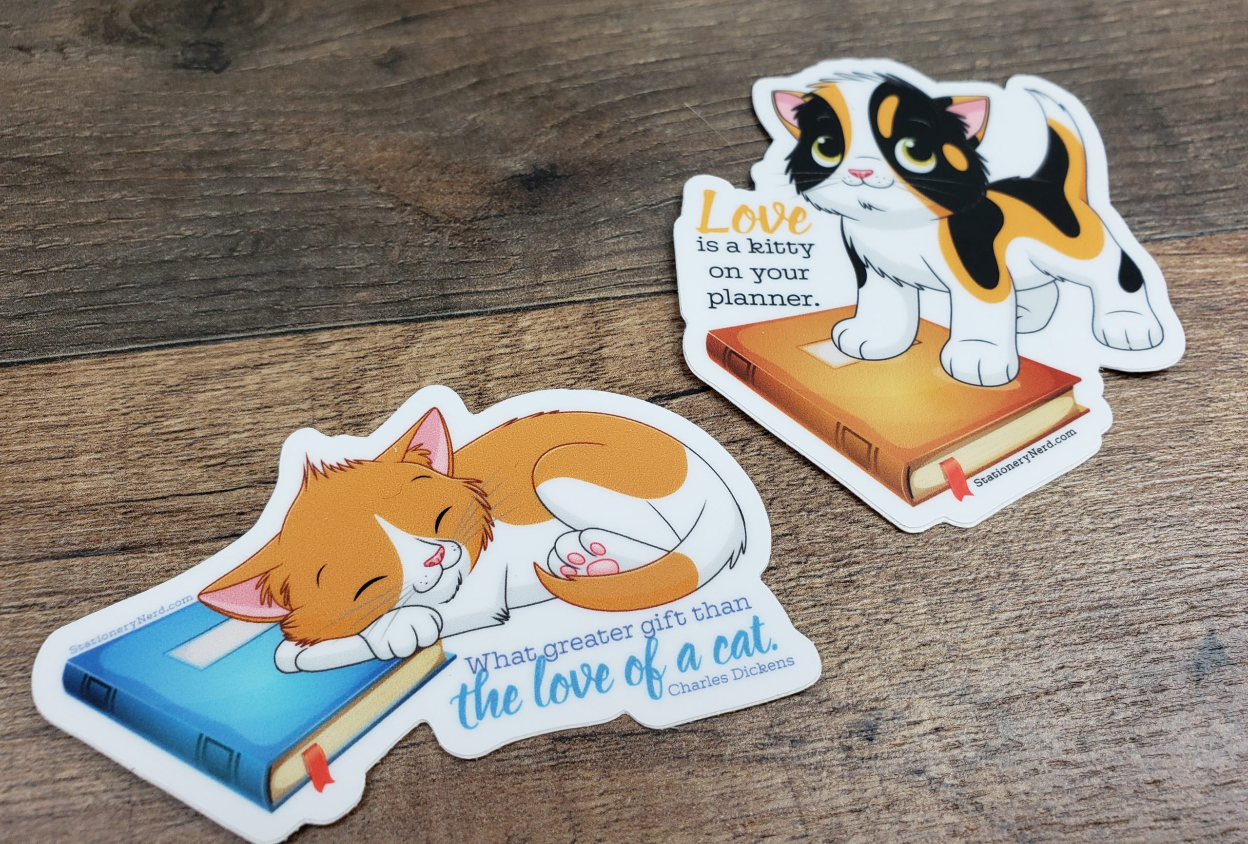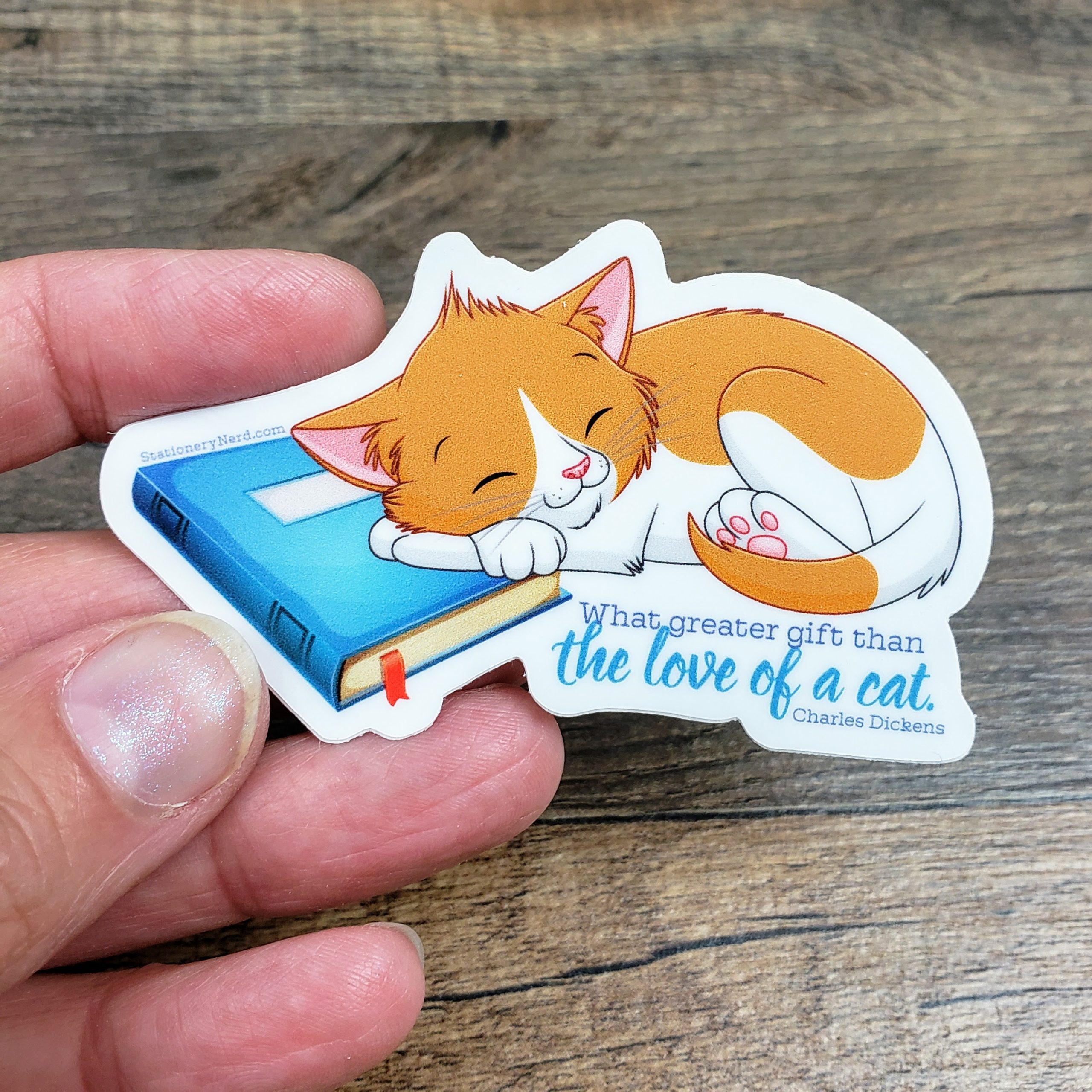 Honor the cozy companionship of a beloved feline with this heartwarming 3″ vinyl sticker featuring Jack – the ginger gentleman of Stationery Nerd. Curled up peacefully on a planner, he’s paired with the timeless quote from Charles Dickens: “What greater gift than the love of a cat.”