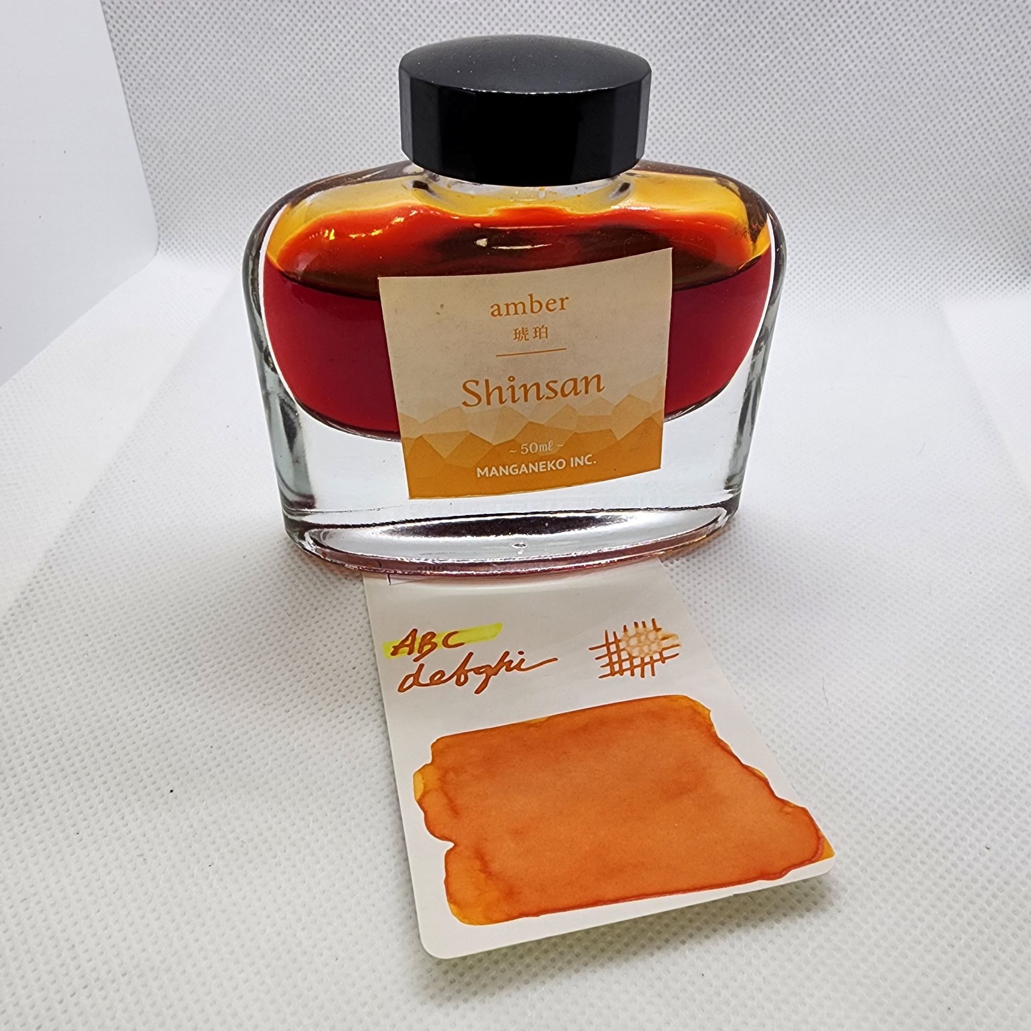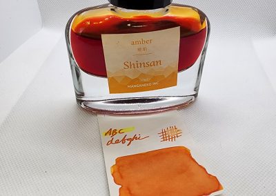 Bright, rich, and full of character — Shinsan “Amber” by Manganeko Inc. captures the luminous warmth of polished resin and autumn sunlight. This Japanese-made fountain pen ink offers a smooth, consistent flow with excellent shading potential, especially in broader nibs or when used for calligraphy.