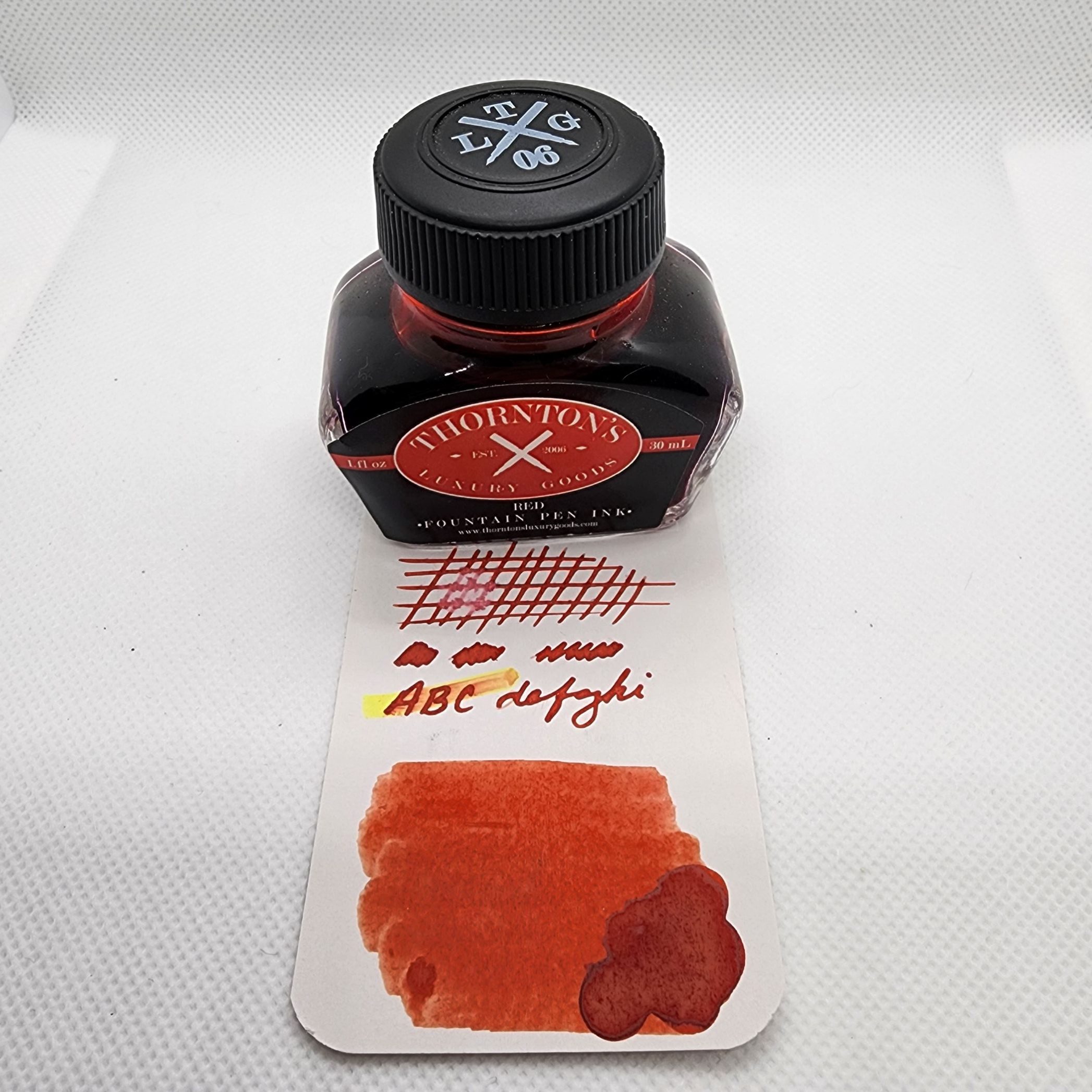 Bring warmth and character to your writing with this elegantly packaged bottle of Thornton’s Luxury Goods red ink. Crafted in Europe and designed for fountain pens, this ink offers a rich, medium-red hue that’s well suited for everyday use, creative journaling, and calligraphy projects. Thornton’s markets its inks as “premium,” emphasizing smooth flow, consistent performance, and vintage / artisanal appeal.