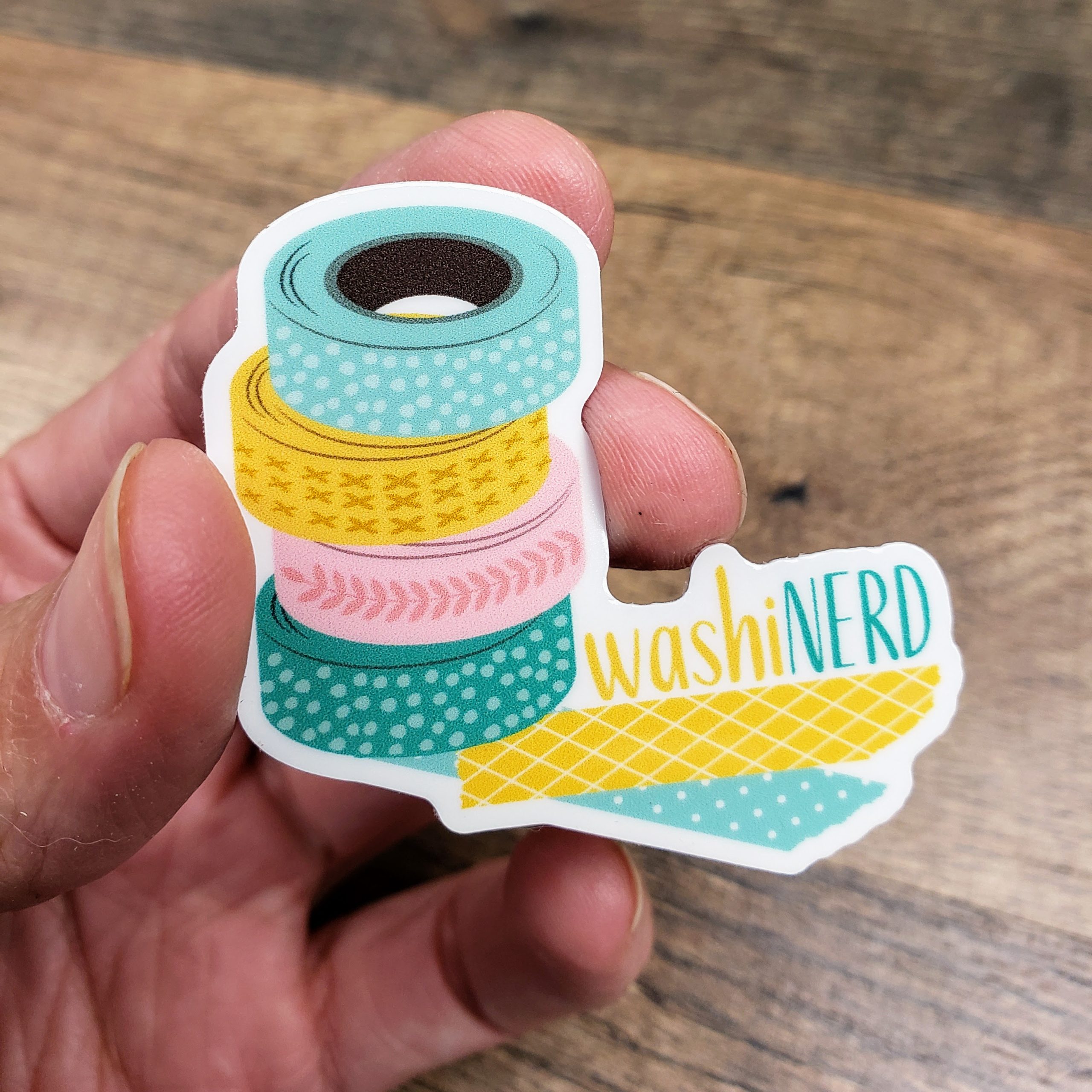 Calling all washi tape lovers! This Washi Nerd sticker features a cheerful stack of washi rolls in playful pastel and bright hues, with torn tape pieces and quirky lettering that shows off your sticker-loving soul. Whether you're decorating your planner or hoarding rolls by the dozen (no shame!), this sticker is a fun nod to your washi obsession.
